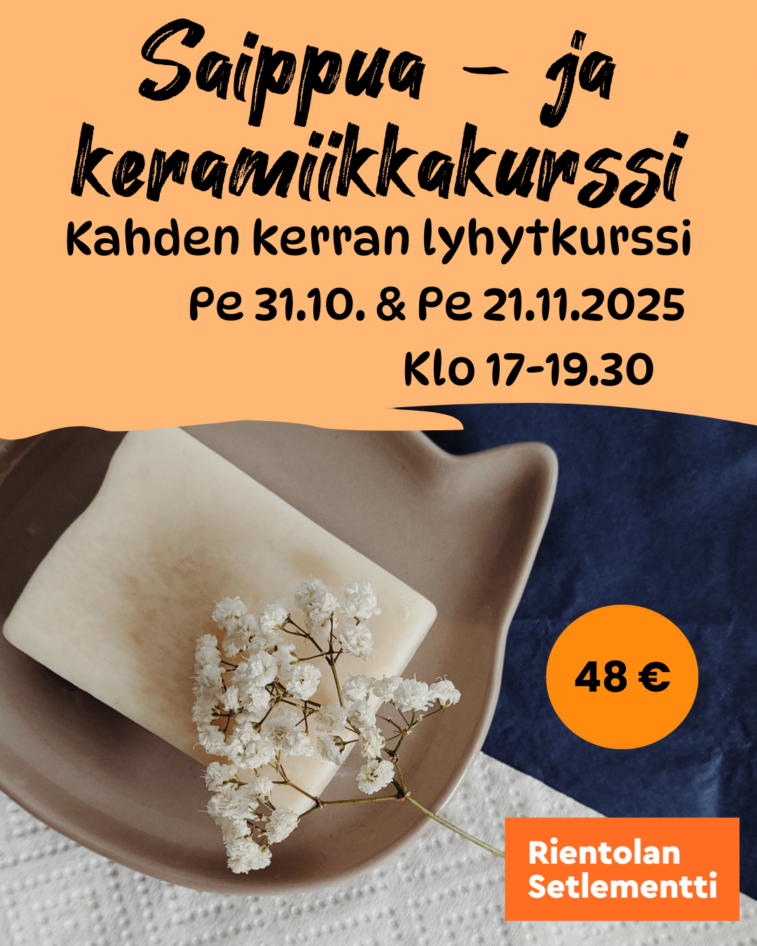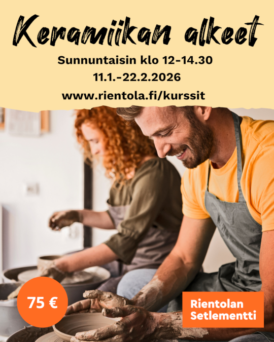 Rientolan tiloissa toimii myös tunnelmallinen savipaja, jossa järjestetään säännöllisesti erilaisia savityö- ja keramiikkakursseja.
