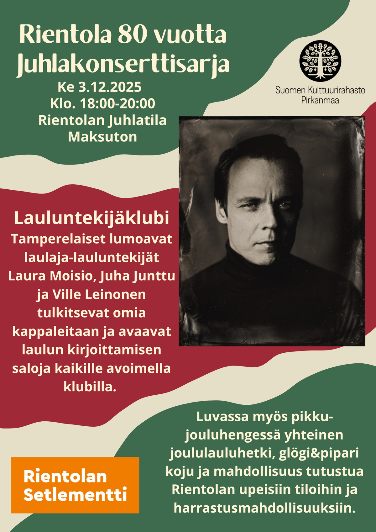 Tamperelaiset lumoavat laulaja-lauluntekijät Laura Moisio, Juha Junttu ja Ville Leinonen tulkitsevat omia kappaleitaan ja avaavat laulun kirjoittamisen saloja kaikille avoimella klubilla.