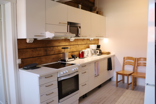 Pirtin vuokrahintaan sisältyy Rientolan astioiden, keittiökoneiden ja -välineiden käyttö
